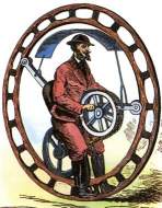 Da das Hochrad neben Balancearbeit auch noch körperliche Tüchtigkeit verlangte, kam die Erfindung des Luftballonrades wie gerufen. Damit sollten schwere Steigungen fliegender als bisher bewältigt werden. |
